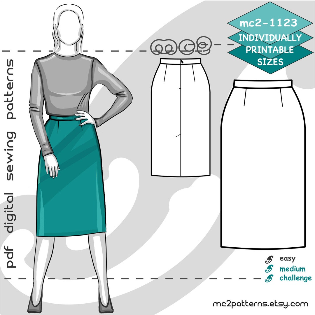 Uk 6 26 Us 2 22 Classic Pencil Skirt Digital Sewing Pdf Etsy Uk