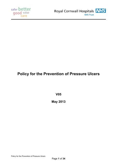 Pressure Ulcer Prevention Policy The Royal Cornwall Hospitals